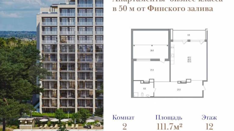 Фильтры1Продаются просторные 2-комнатные апартаменты у самого берега Финского залива площадью 111,7 м2 в комплексе бизнес-класса «Морская Ривьера». Располагаются в...
