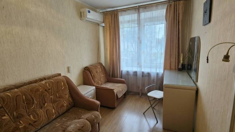 Арт. 135130676 2-ккв 46.1 кв. м, комната 19,7 кв. м проходная с балконом, спальня 11,4 кв. м, кухня 6,4 кв. м, с/у совмещенный, этаж 4/5 панельного дома 1966...