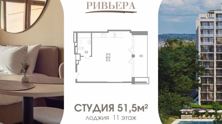 Студия 22,4 м с отделкой под ключ и глубокой лоджией-аэрарией. Находится лот на 9 этаже, откуда открывается завораживающий вид на лес. »Морская Ривьера...