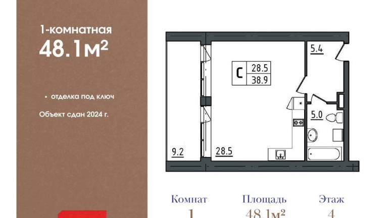 Продается 1-комн. квартира, площадью 36.98 м2 в монолитно-кирпичной новостройке в 20 мин. транспортом от м.Улица Дыбенко. Возможен вариант покупки с...