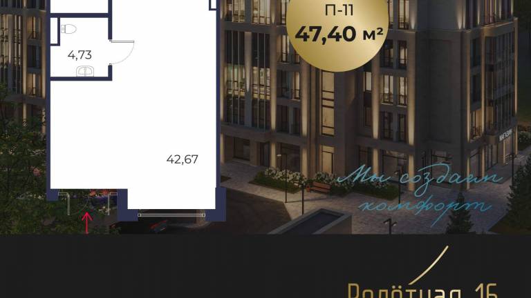 Продается от застройщика коммерческое помещение площадью 47,4 м2, в жилом комплексе бизнес-класса «Взлетная 16». Помещение свободного назначения...