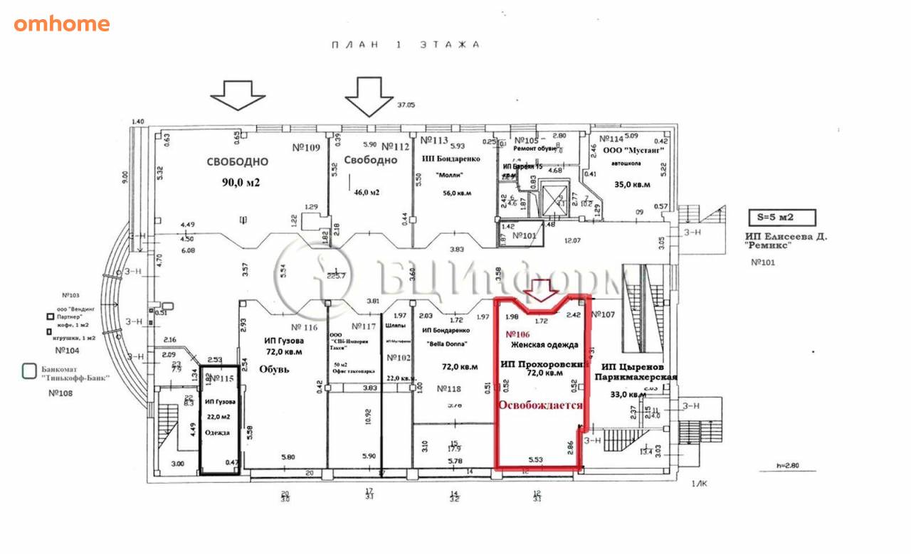 Аренда помещения свободного назначения 72 м²