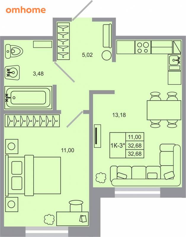 32,68 м²