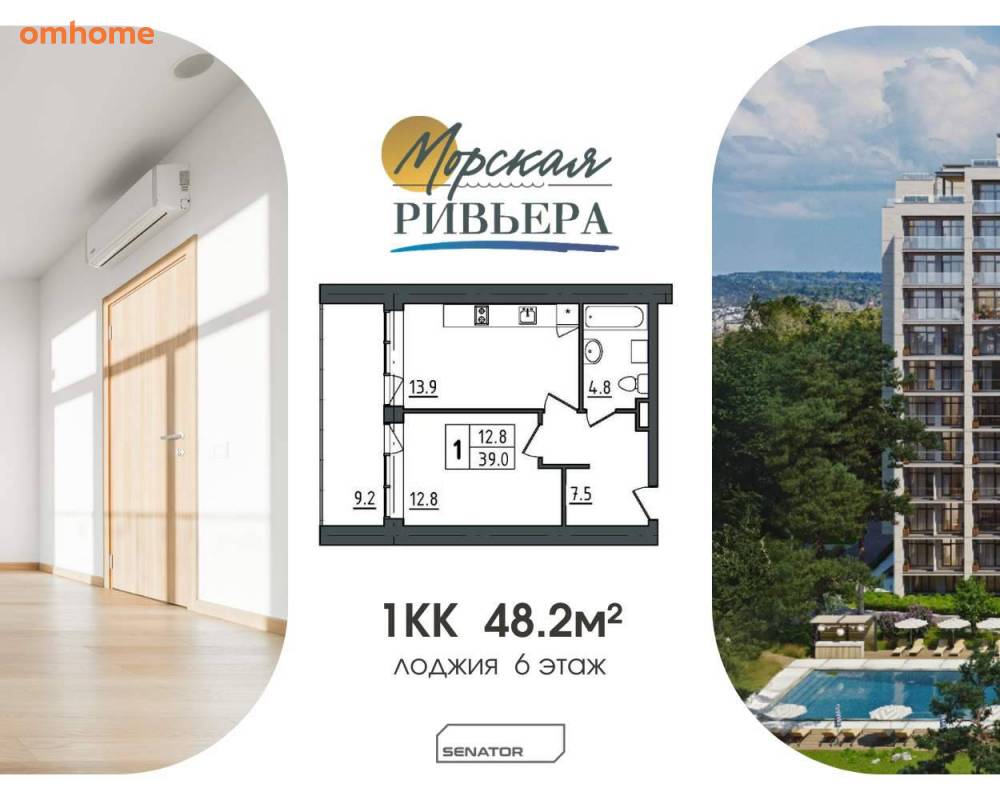 Продажа 1-комнатных апартаментов 48,2 м²