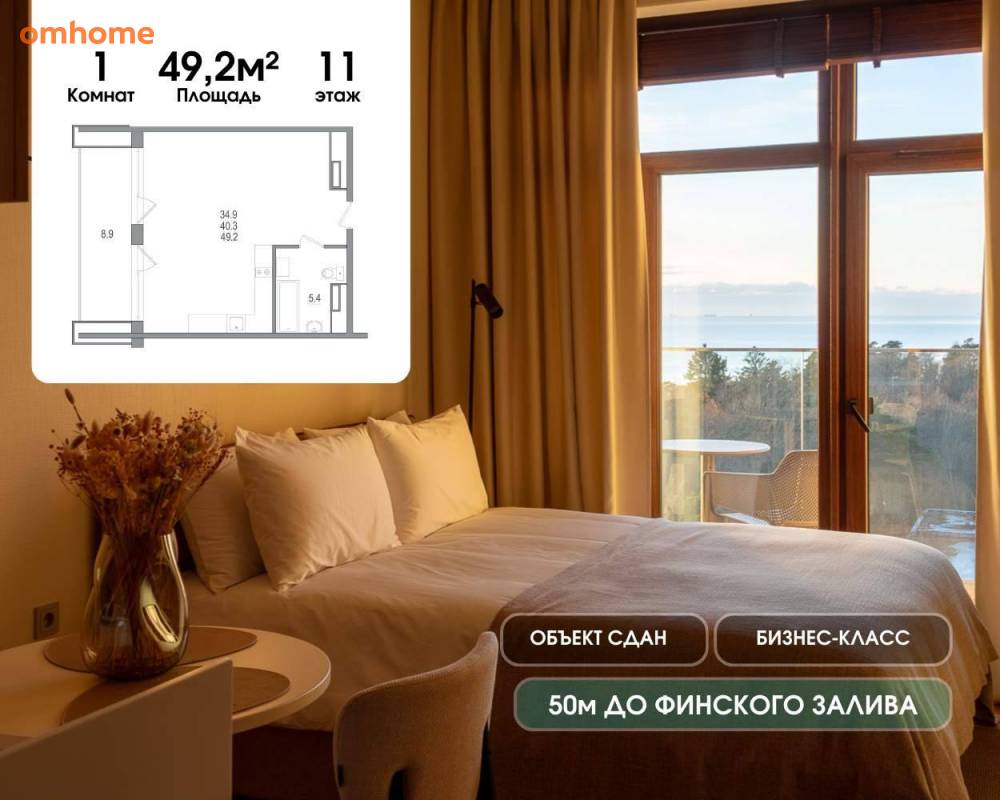 Продается просторная светлая студия у самого берега Финского залива. Идеально для жизни и отдыха. Площадь 49,2 м, высокие потолки до 3м, остекление в пол и глубокая лоджия-аэрарий: можно разместить два шезлонга, кофейный столик и наслаждаться свежим воздухом на собственной террасе. В апартаментах редкий для нашего времени уровень звукоизоляции, это вам позволит наслаждаться тишиной и приватностью. А также из крана течет чистейшая питьевая вода. Черновая отделка позволит реализовать собственный дизайн.