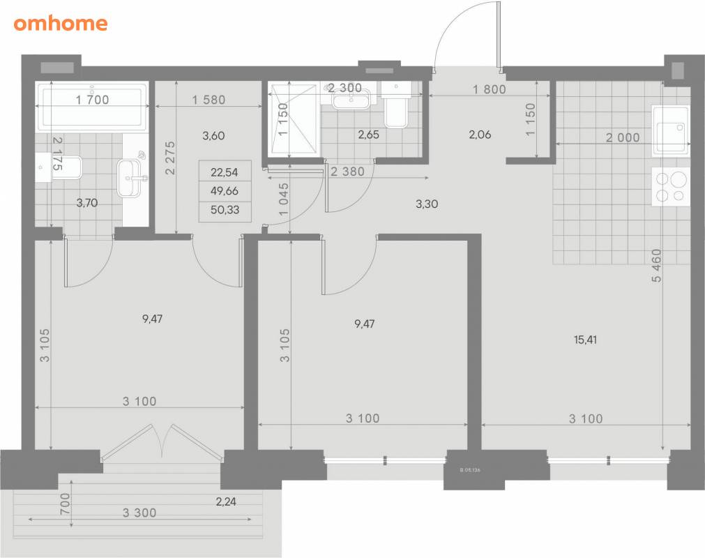Продажа 2-комнатной квартиры 50,33 м²