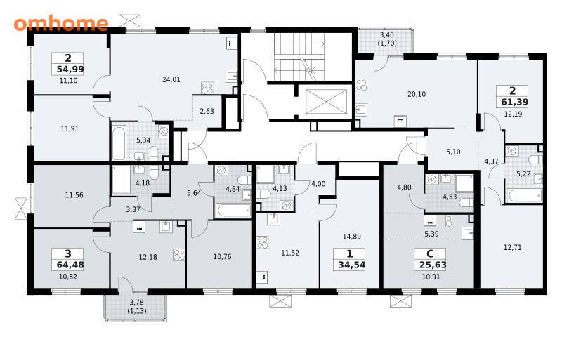 Продажа 3-комнатной квартиры 64,48 м²
