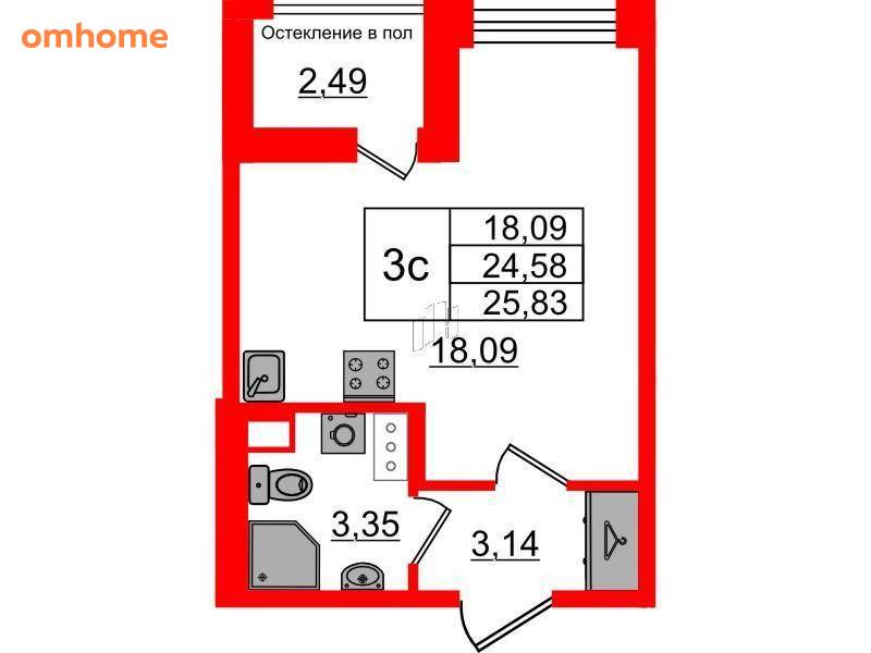 Продажа студии 24,58 м²
