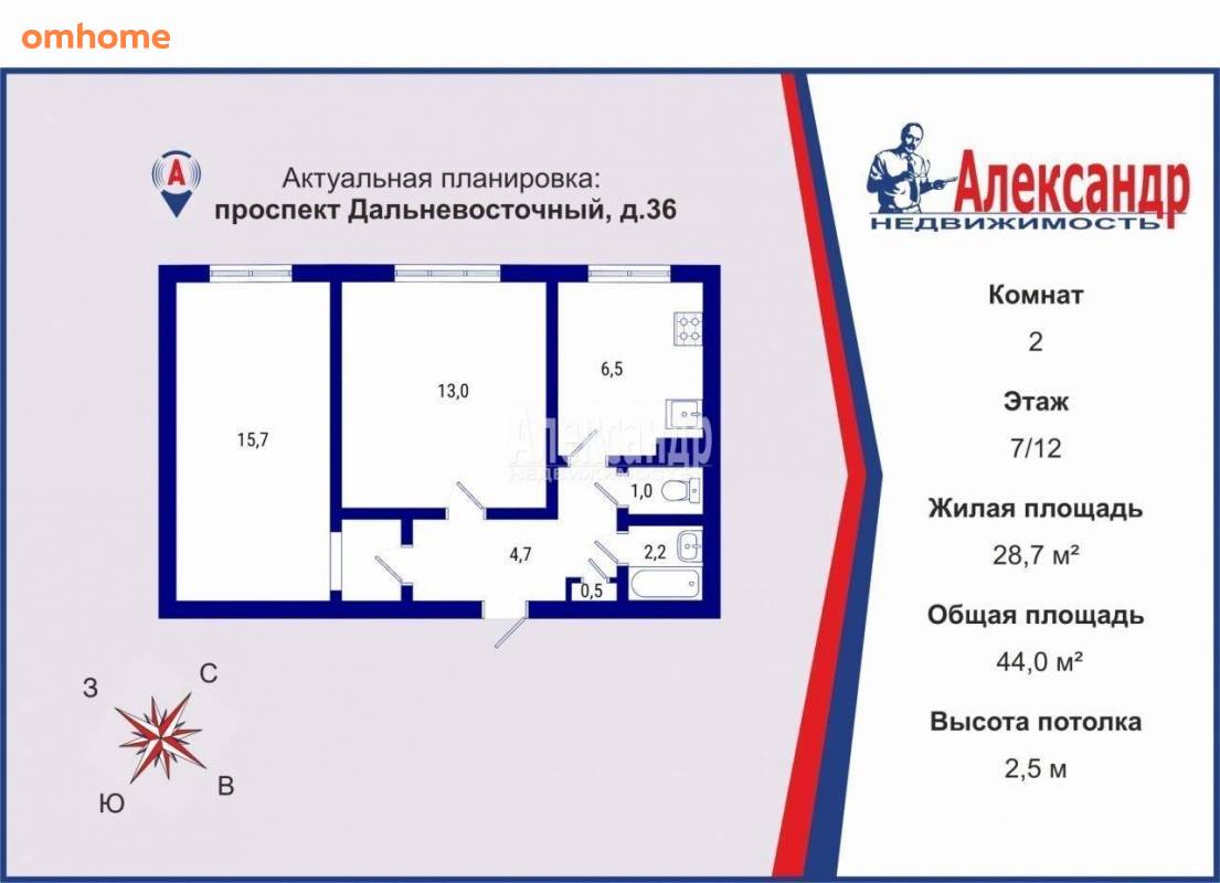 Высота потолков 2,5 м