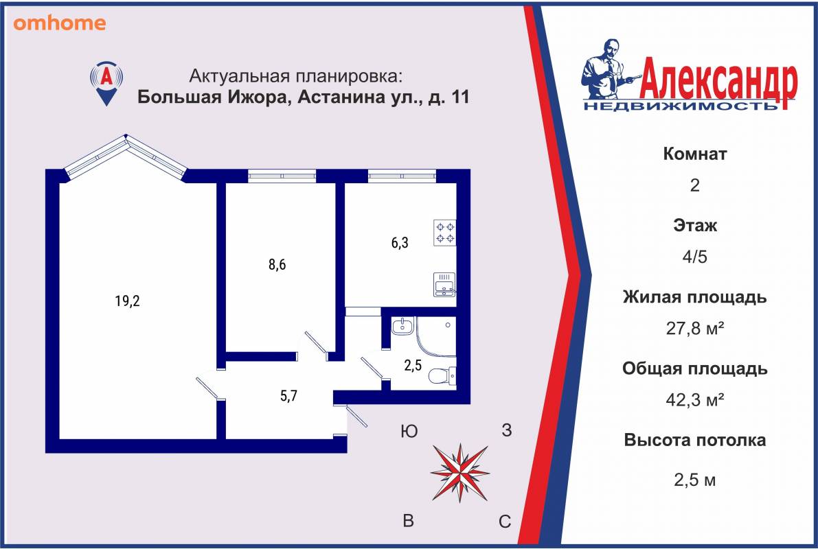 Высота потолков 2,5 м
