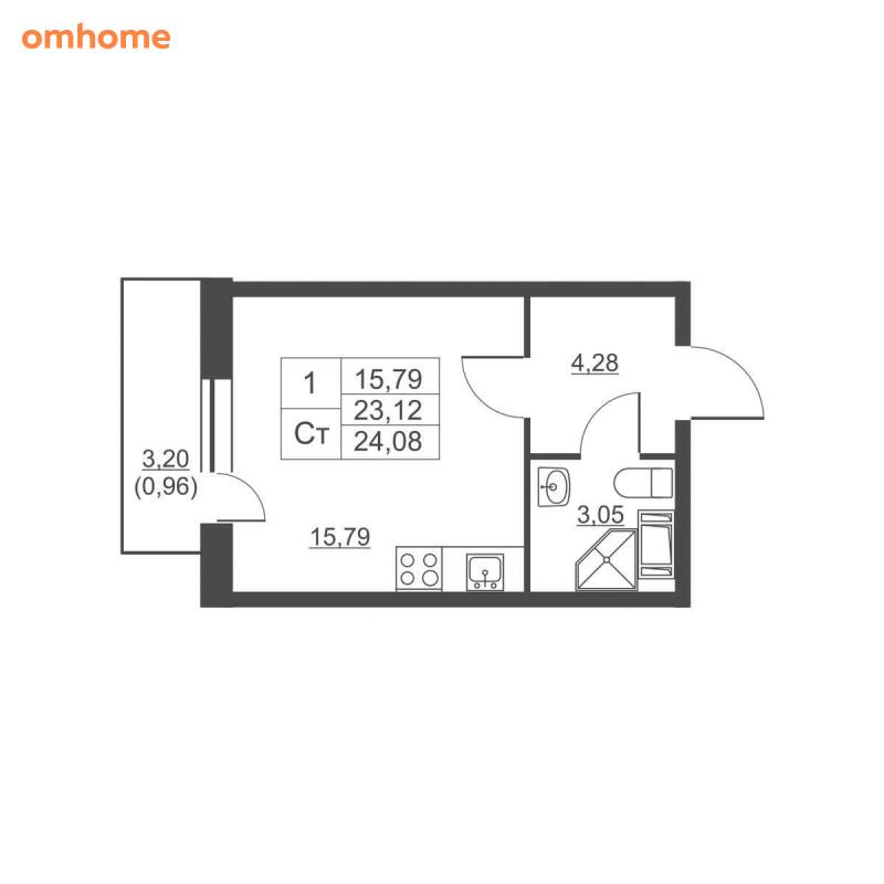 Продажа студии 22,9 м²