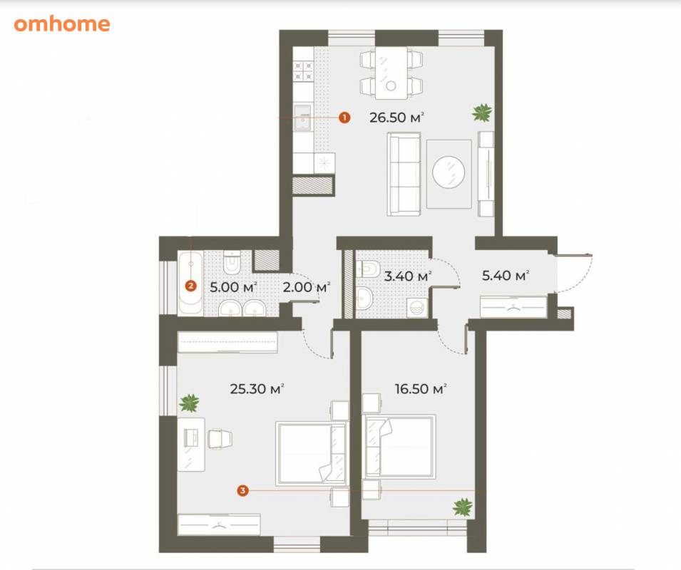 25,3 м²•16,5 м²