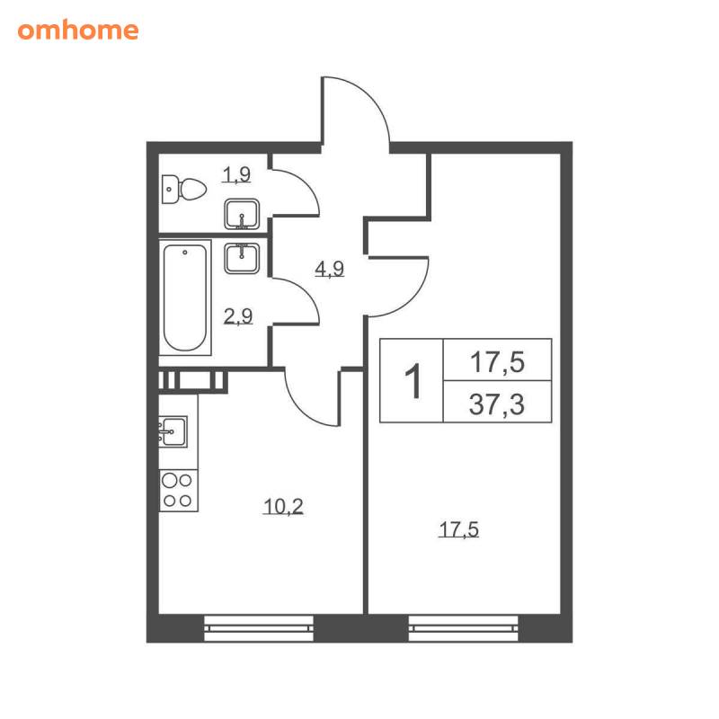 Продажа 1-комнатной квартиры 37,3 м²