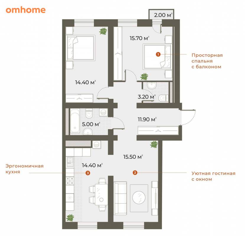 14,4 м²•15,7 м²