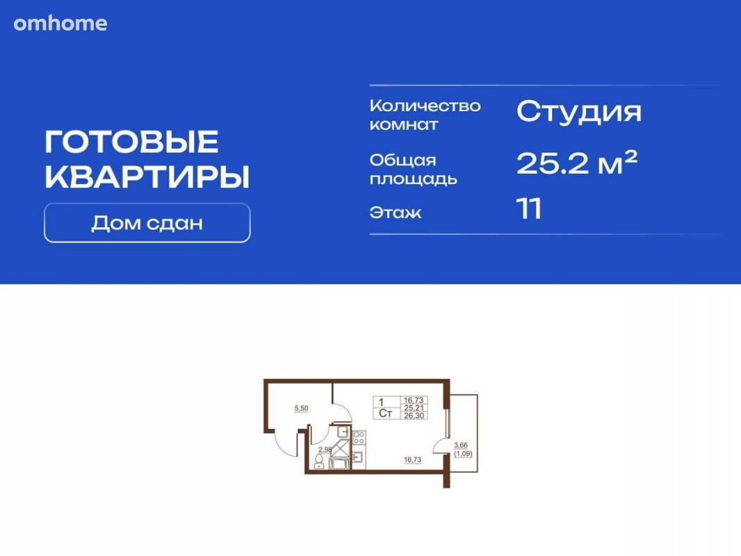 Продажа студии 25,2 м²