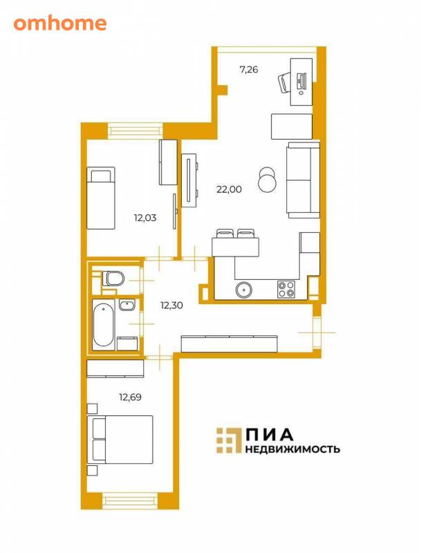 Продажа 2-комнатной квартиры 62,8 м²