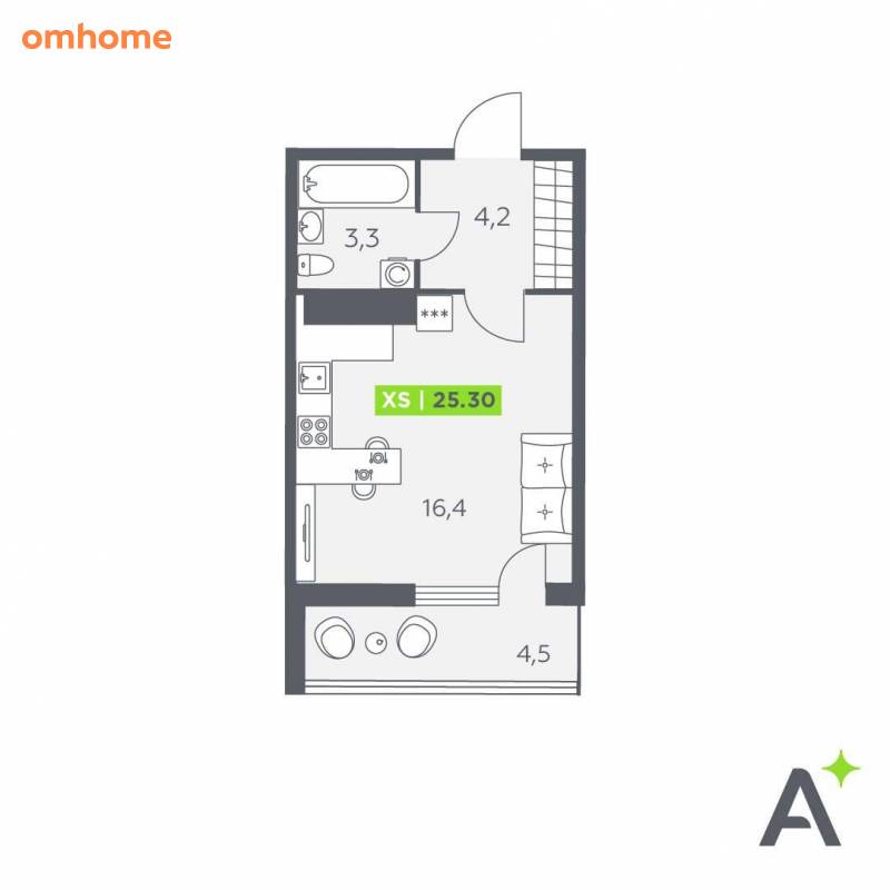 Продажа студии 25,3 м²