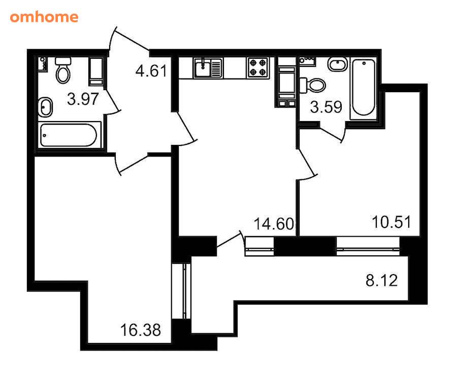 Продажа 2-комнатной квартиры 52,7 м²