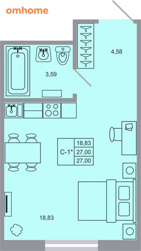 Продажа студии 26,5 м²