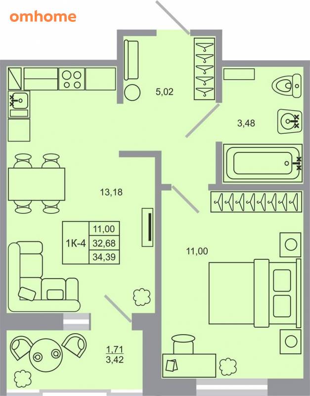 34,39 м²