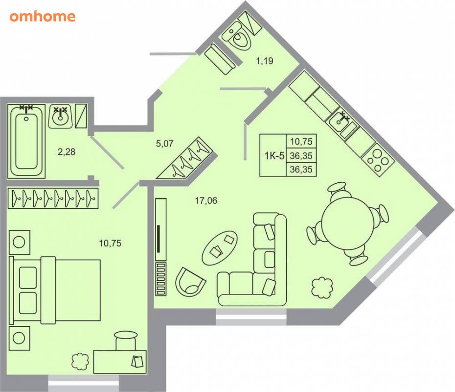 Продажа 1-комнатной квартиры 35,4 м²