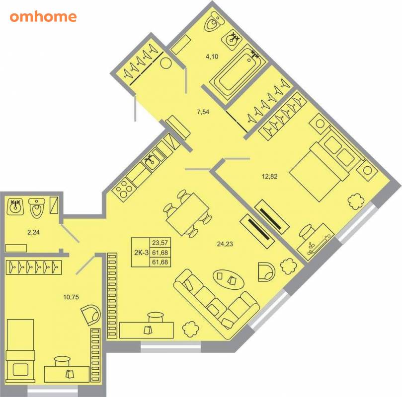 Продажа 2-комнатной квартиры 61,1 м²