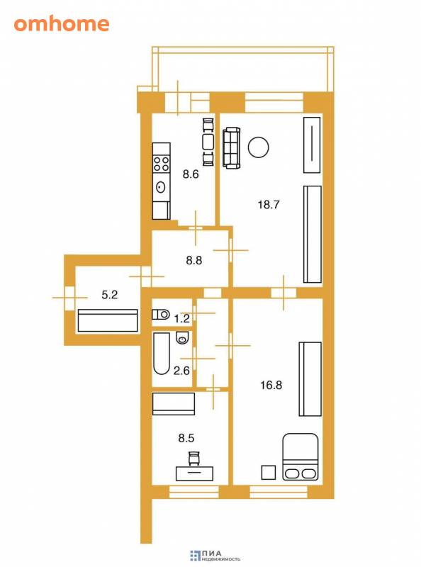 3-комнатная квартира