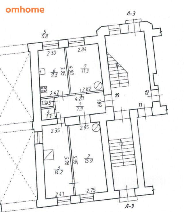 Высота потолков 3,4 м•Вид во двор и на улицу