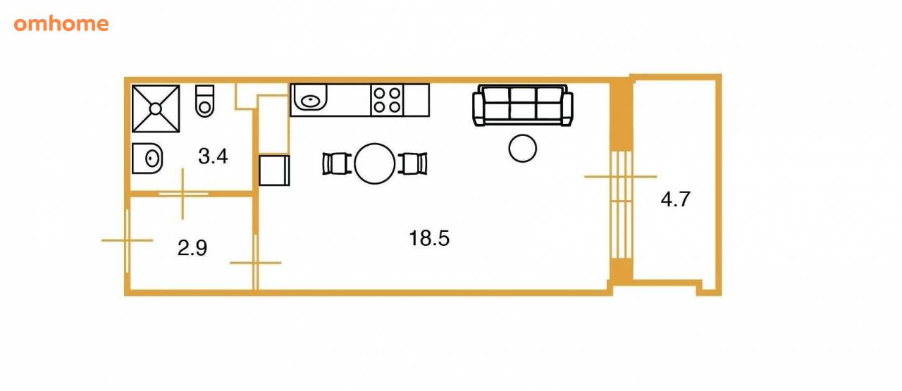 18,7 м²